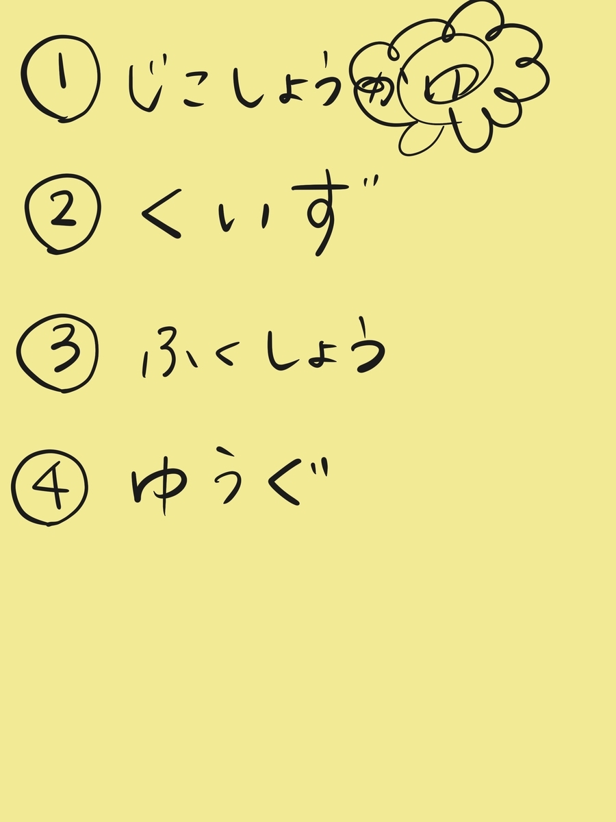 これでも以前に比べればまだ随分と成長している。以前なら、耳よりも目から入ってくる情報を無意識に優先して、ただ自分が言いたい時に言いたい事を言うだけだった。相手の言葉は耳に入ってすらなかった。そして、毎回思う。娘は発達障害なのだ。それでいろいろ遅れたりできないことがある。しかし、人の話聞いてない大人なんて結構いるぞ!特におじさん!聞いてきたくせに聞かず、聞いてもないのに言いたいこと言うという曲者だぞ!それに比べれば、よっぽど人の話に耳傾けれるようになったよ、えらいよ、娘!母は邪魔しないように見守ってるよ!など内心思ってるうちに、個室に着く。先生と娘は机に向かって座り、私は少し離れた席で見守る。基本的に私は先生に聞かれるまでは黙って見ているだけだ。先生がメモ用紙を取り出し、今日やることを書いていく。こうすると見通しがたって安心して集中できるそうだ。うちでもやろう。